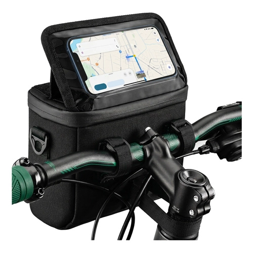 Montajul pe ghidon cu ajutorul benzilor puternice cu arici este rapid și stabil. Unghiul ajustabil al suportului sporește confortul la navigare. Datorită numărului mare de buzunare vei avea totul bine organizat și la îndemână. Este inclus și un bretea de umăr pentru transport ușor în afara bicicletei.