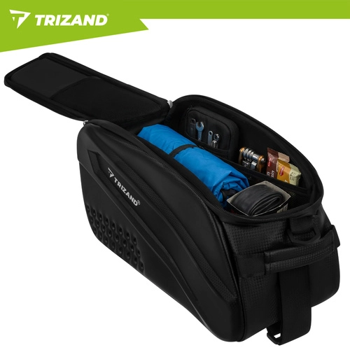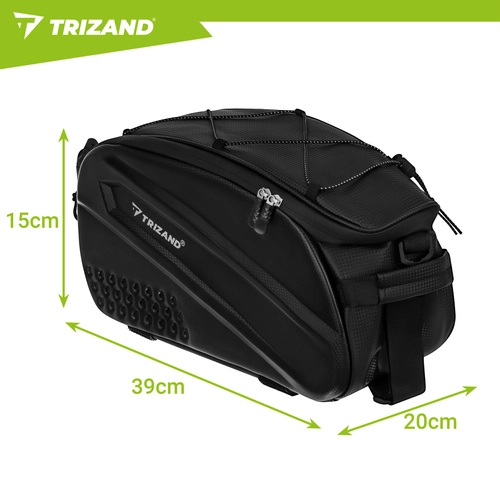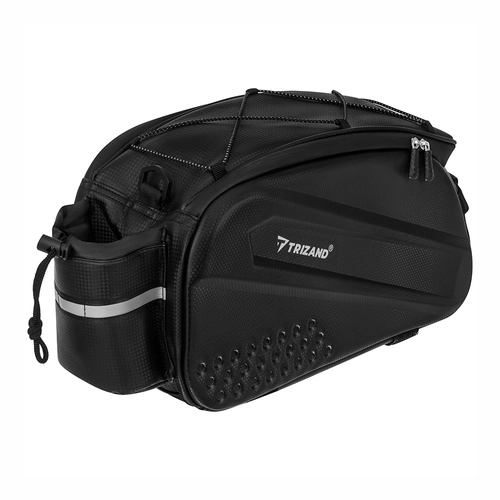 Practică geantă impermeabilă pentru portbagajul spate TRIZAND, cu volum de 10 l, găzduiește confortabil scule, cameră de rezervă, gustare și o jachetă ușoară. Montaj rapid cu benzi velcro, curea de umăr detașabilă, buzunar pentru sticlă și elemente reflectorizante pentru confort și siguranță la mers.