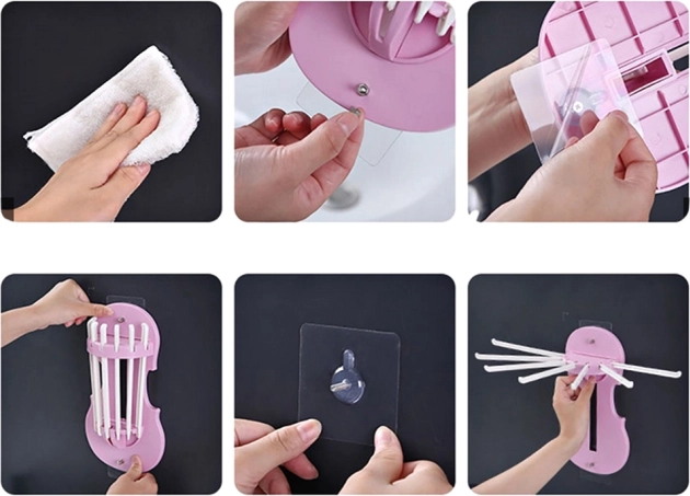 Cuierul pentru prosoape de baie și bucătărie oferă o soluție eficientă pentru spațiul de depozitare. Poate fi fixat cu ușurință folosind suporturi adezive, asigurând o prindere sigură și fermă. După utilizare, îl puteți plia pentru a economisi spațiu.