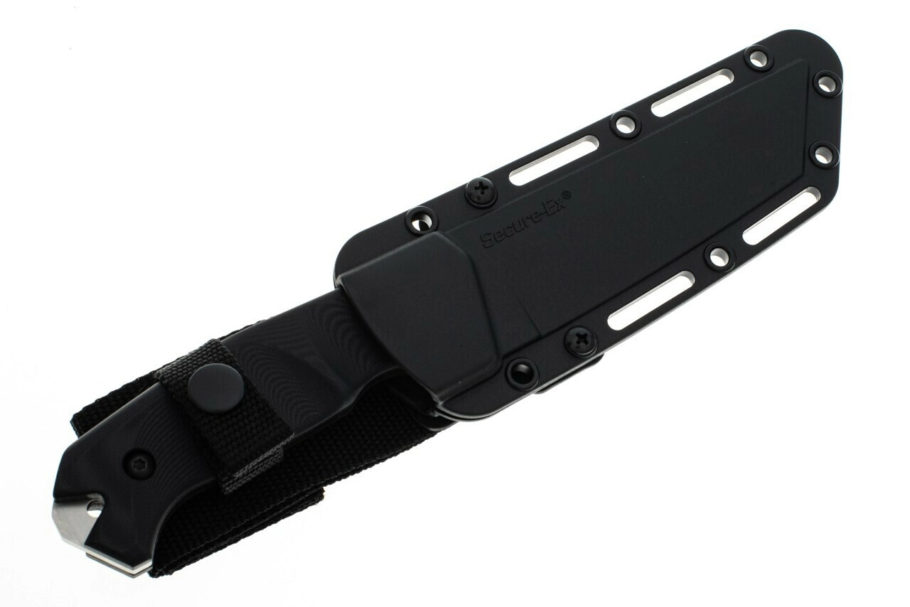 Finisajul stonewash al lamei reduce reflexiile și maschează mai bine urmele fine de utilizare. Nu lipsește orificiul pentru șnur pentru securizare sau personalizarea cuțitului. Pachetul include teacă robustă Secure‑Ex cu opțiuni variabile de prindere pentru montare sigură și rapidă.