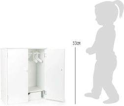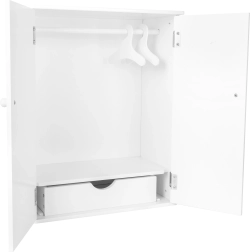 Acest dulap alb pentru păpuși este ideal pentru menținerea ordinii în garderoba păpușilor tale preferate. Designul practic permite agățarea ușoară a hainelor și organizarea obiectelor mici, perfect pentru jocurile copiilor.