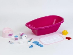 Această cadă mare pentru păpuși conține 12 piese de accesorii de care fiecare "mămică" are nevoie pentru îngrijirea bebelușului său. Ideală pentru păpuși cu dimensiuni de până la 50 cm.