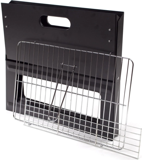 Datorită structurii în X a picioarelor, grătarul rămâne stabil pe diverse suprafețe. Este excelent pentru camping, grădină, terasă și călătorii – îl deschizi, adaugi cărbunele și ești gata de gătit.