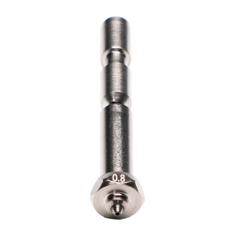 Datorită diametrului mai mare al duzei, obțineți un debit mai mare, fiind potrivit pentru imprimare rapidă, piese voluminoase și materiale ce necesită dozare mai intensă. În plus, oțelul inoxidabil oferă rezistență mai bună la abraziune față de alamă, ceea ce se traduce printr-o durată de viață mai lungă și o calitate mai consistentă a straturilor.