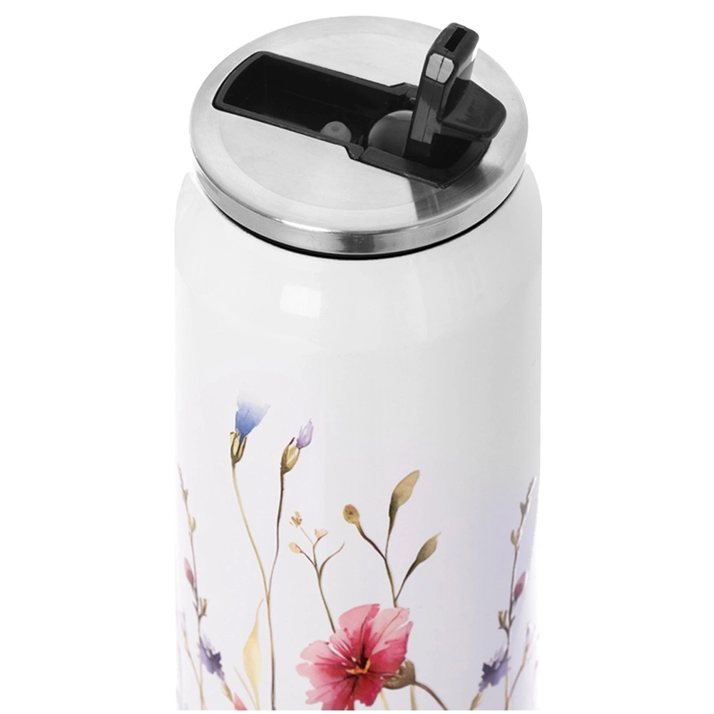 Datorită etanșării de calitate, cana este excepțional de impermeabilă, astfel încât o poți pune în poșetă, rucsac sau valiză. Preîncălzirea sau pre-răcirea cu apă fierbinte ori rece timp de 5 minute prelungește și mai mult efectul termic. Suprafața albă elegantă cu motiv floral adaugă farmec rutinei tale de hidratare tot anul.