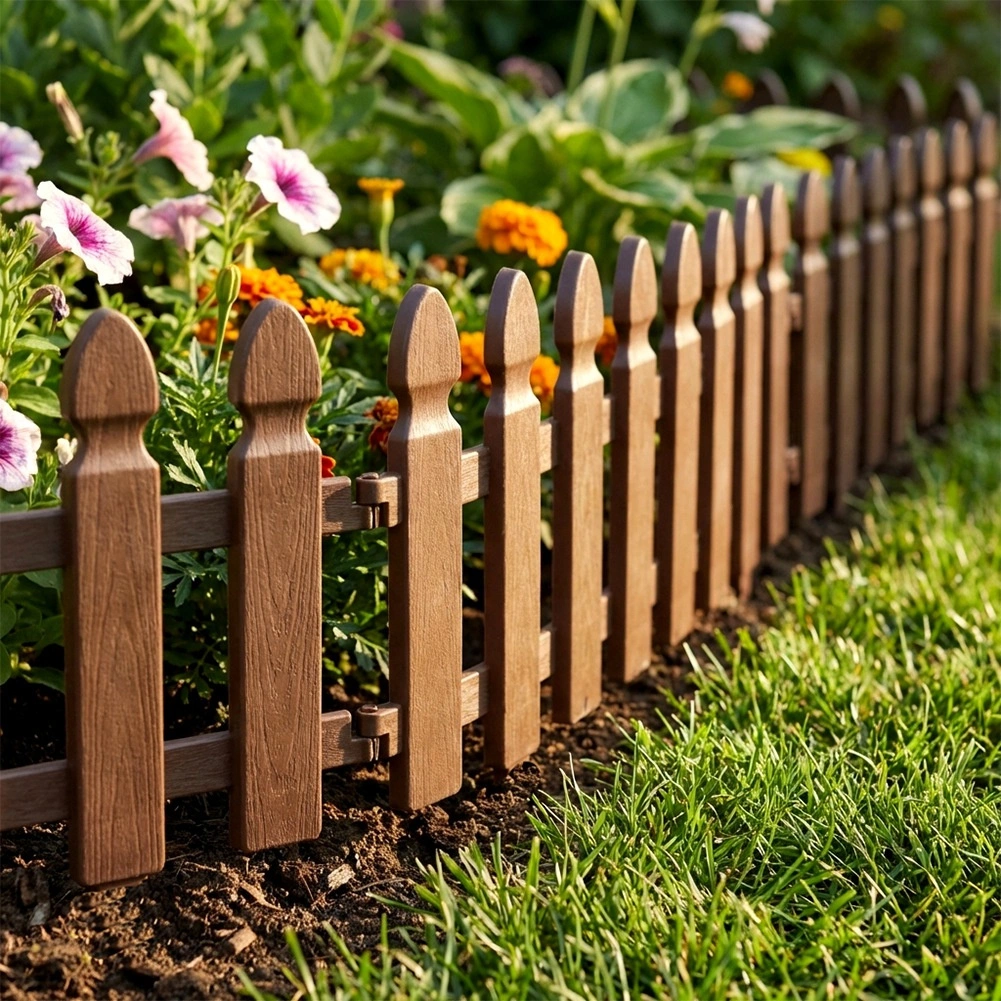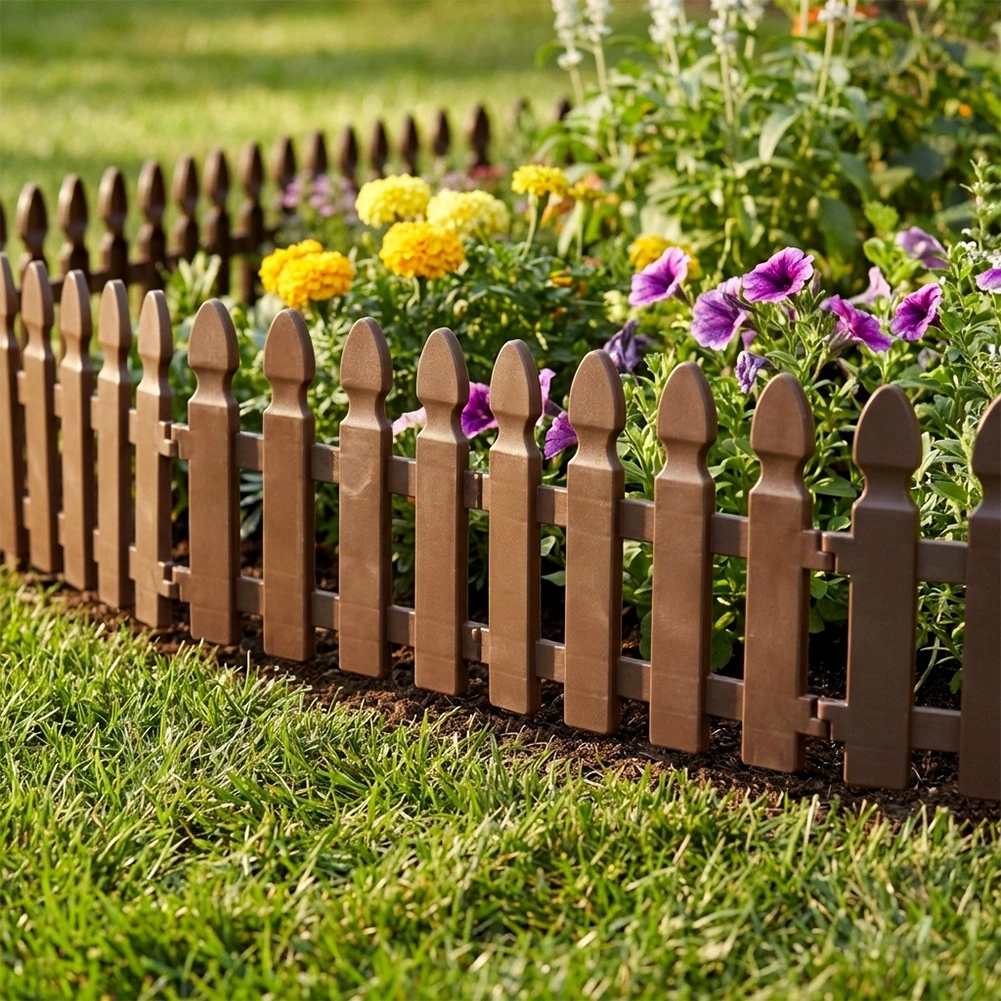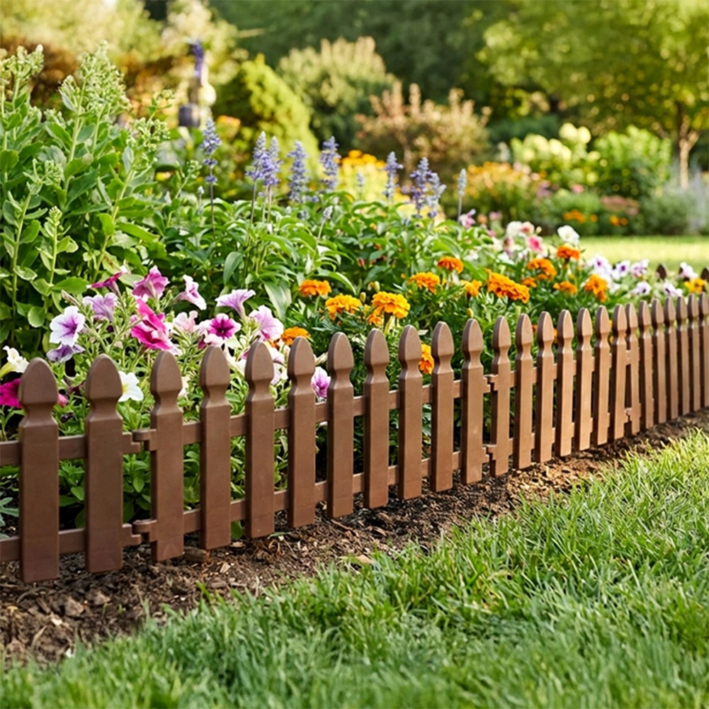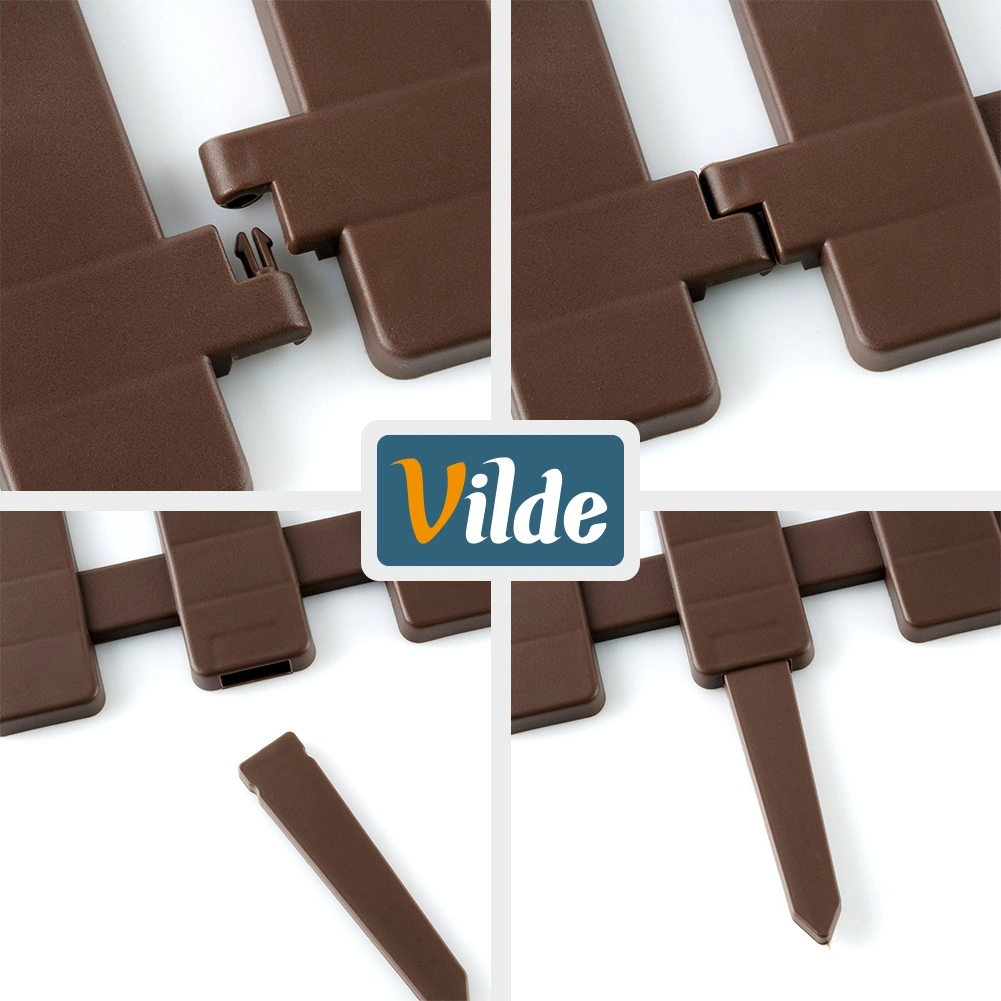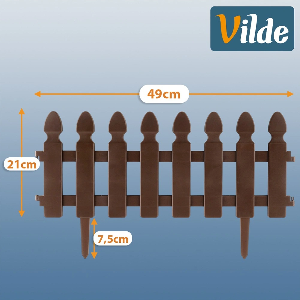 Gard decorativ de grădină, practic, în culoare maro, pentru delimitarea curată a straturilor, gazonului și aleilor. Set de 4 panouri cu dimensiunile 49 × 21 cm, cu țepușe pentru fixare fermă și cleme de interconectare, care permit crearea unui borduraj cu lungimea de până la 195 cm. Construcție rezistentă, stabilizată UV și rezistentă la îngheț pentru durată lungă de viață.