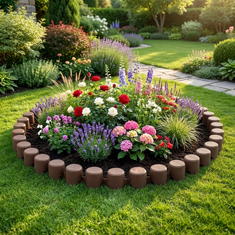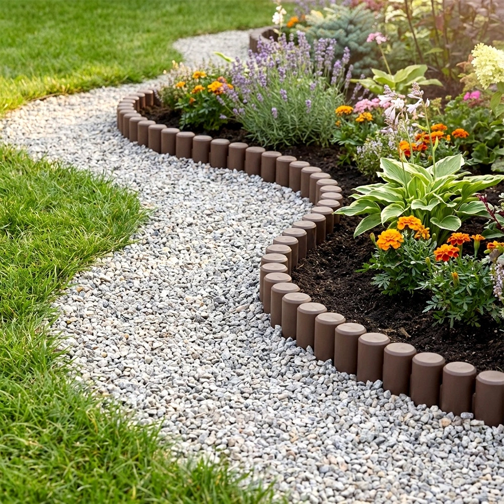 Creați margini curate și îngrijite în jurul straturilor cu flori sau legume. Sistemul modular permite formarea atât a liniilor drepte, cât și a curbelor, astfel încât puteți adapta cu ușurință lungimea și forma marginii la fiecare zonă. Nuanța maro se potrivește natural cu solul și plantele din grădină.