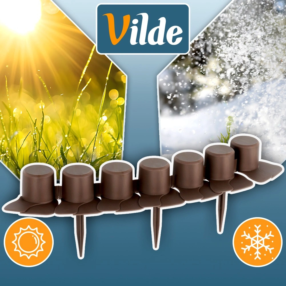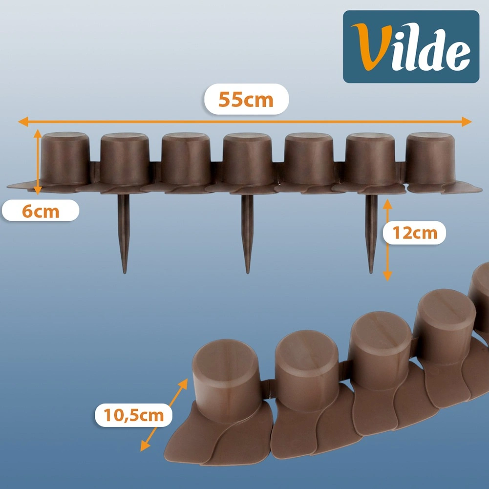 Fiecare segment (55 cm) este echipat cu țepi de montaj stabili (12 cm) pentru ancorare fermă și cu muchie-rampă, care permite trecerea lină a mașinii de tuns iarba fără agățări. Practicul decupaj pentru ghidarea cablului sau a furtunului facilitează instalarea irigațiilor sau a iluminatului. Plasticul de calitate este rezistent la intemperii – nu se degradează la soare, nu crapă la îngheț și nu este afectat de ploaie.