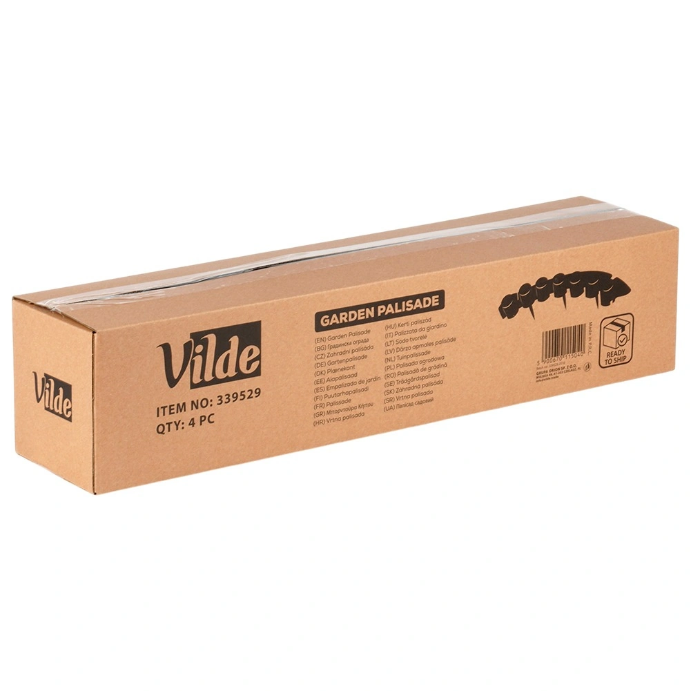 Practică și decorativă, palisada de grădină în culoare maro ajută la delimitarea clară a gazonului, straturilor de flori și aleilor. Setul conține 4 segmente interconectabile cu lungimea totală de 220 cm, cu țepi integrați pentru montaj rapid și rampe pentru mașina de tuns iarba pentru o întreținere ușoară a marginilor. Plasticul rezistent face față înghețului, radiațiilor UV și ploii, păstrându-și forma și culoarea pe termen lung.