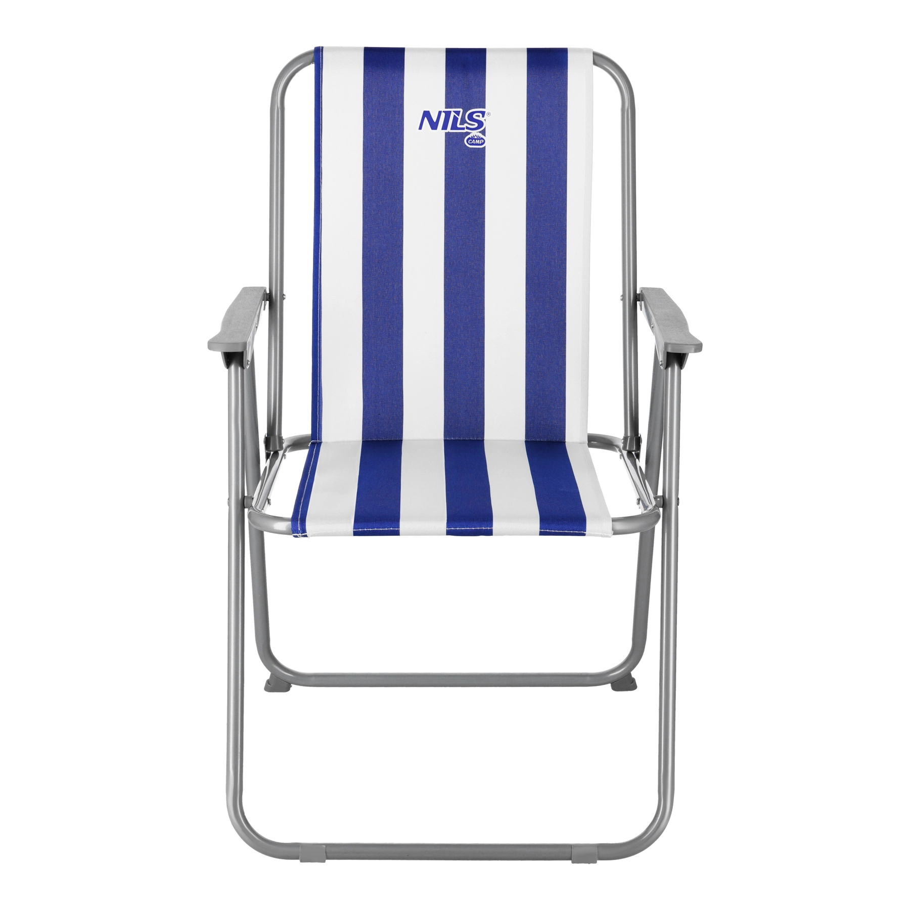 Scaunul pliabil NILS Camp, în dungi alb‑albastre, este un companion practic pentru toate activitățile în aer liber. Datorită cadrului din oțel este stabil pe iarbă, nisip și pavaj, iar țesătura rezistentă 600D Oxford oferă confort atât pentru pauze scurte, cât și pentru șederi îndelungate.