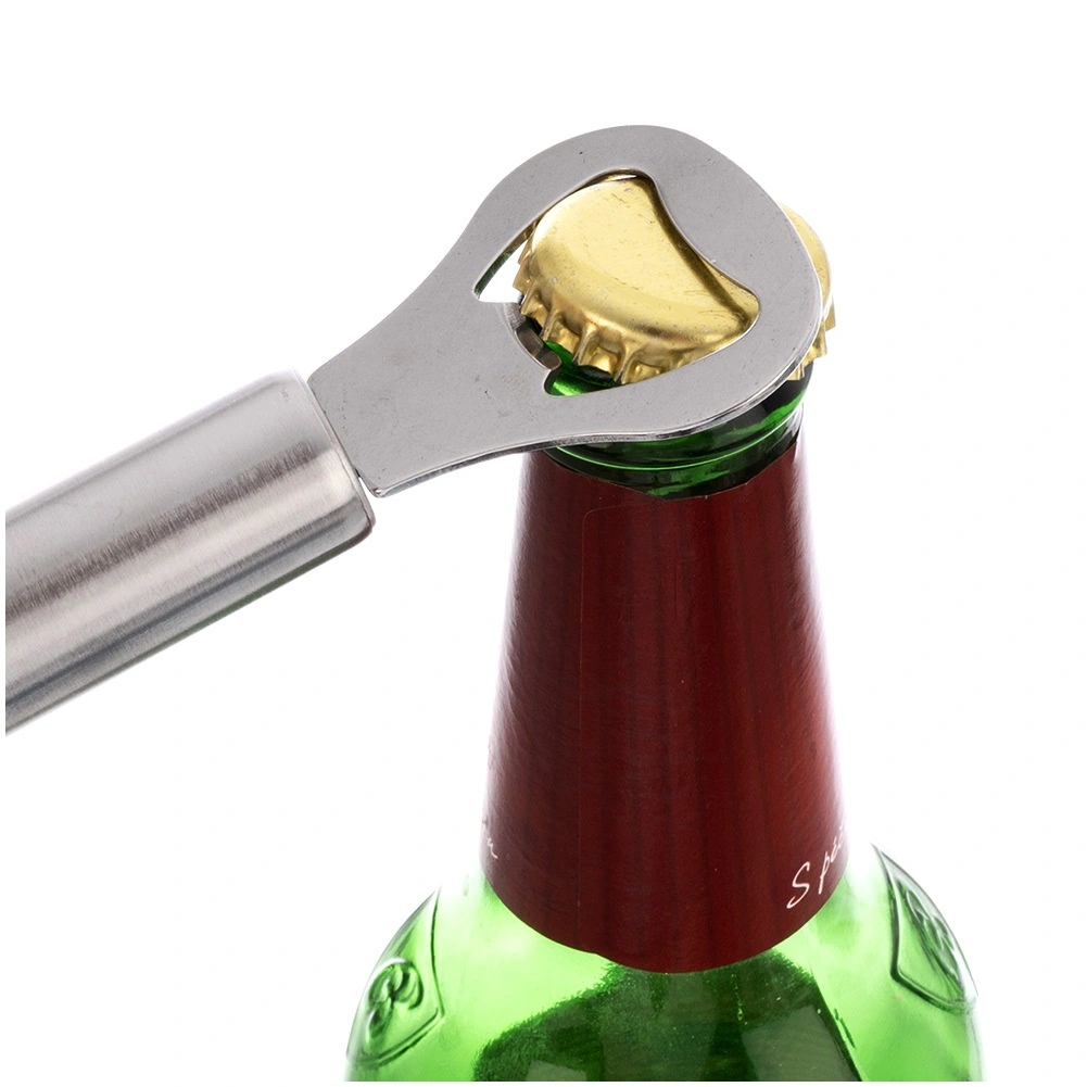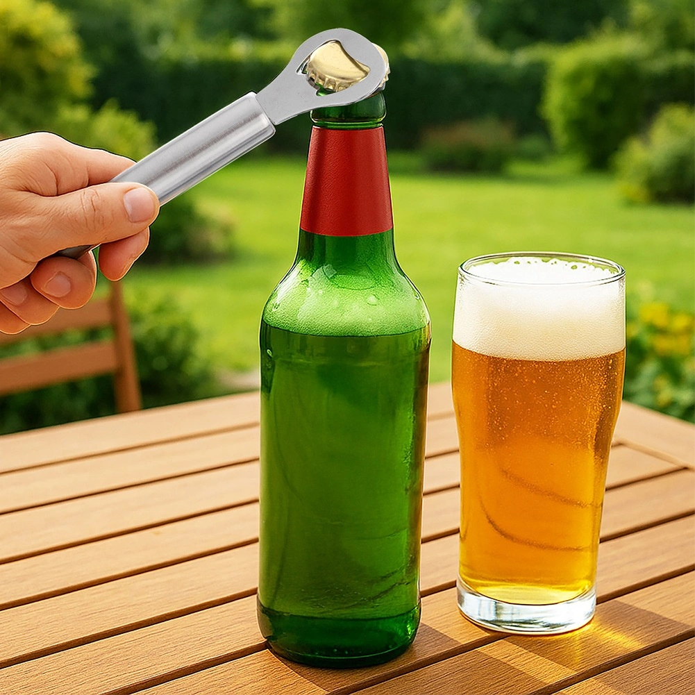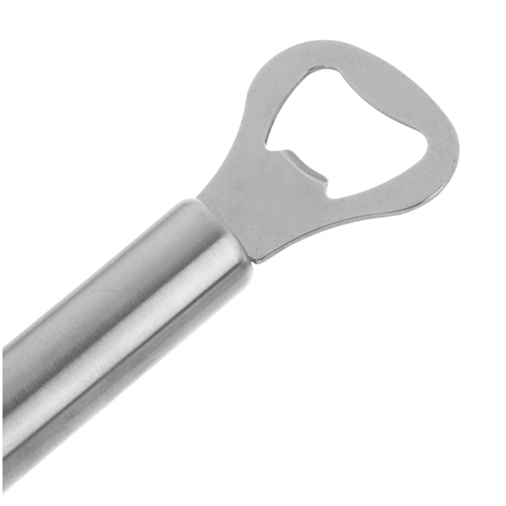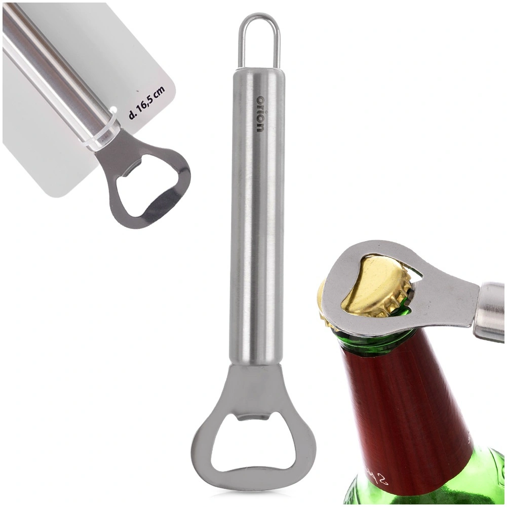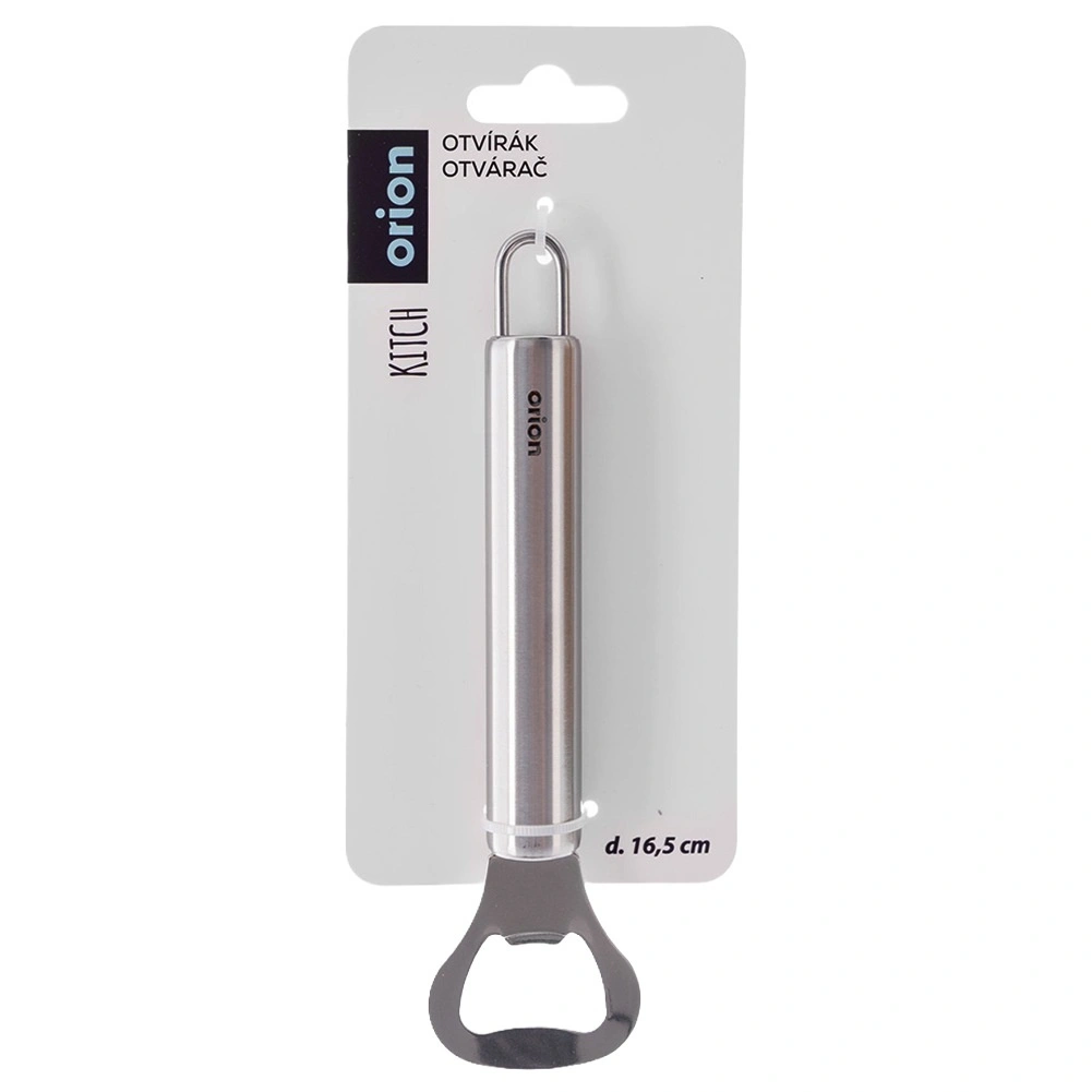 Deschizătorul rezistent din oțel inoxidabil, cu finisaj modern argintiu, este conceput pentru utilizare zilnică. Mânerul cilindric, ergonomic, se potrivește excelent în mână și permite deschiderea rapidă și lină a sticlelor fără efort. Ochetul de agățare asigură depozitare practică pe cârlig sau șină, astfel încât deschizătorul să fie mereu la îndemână.