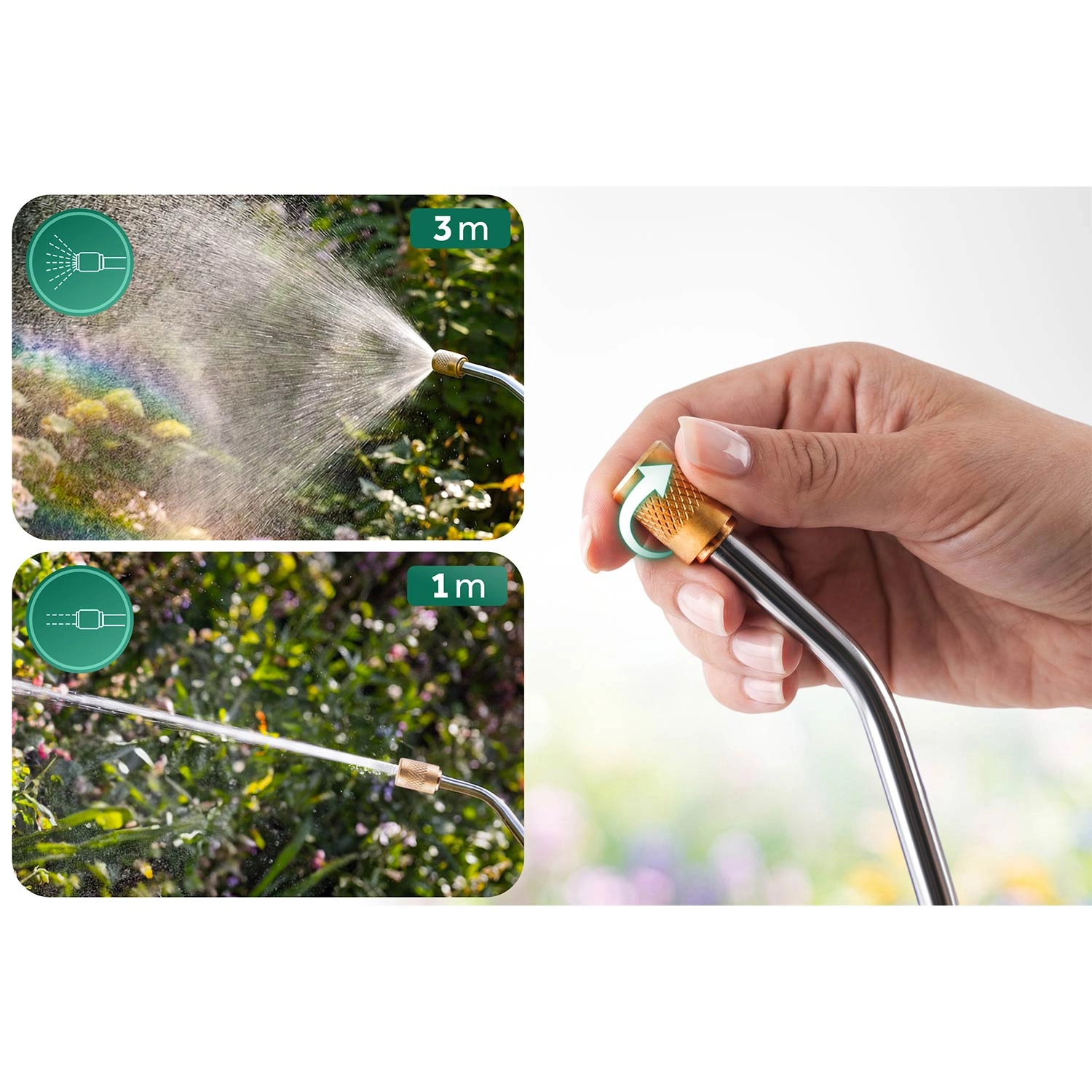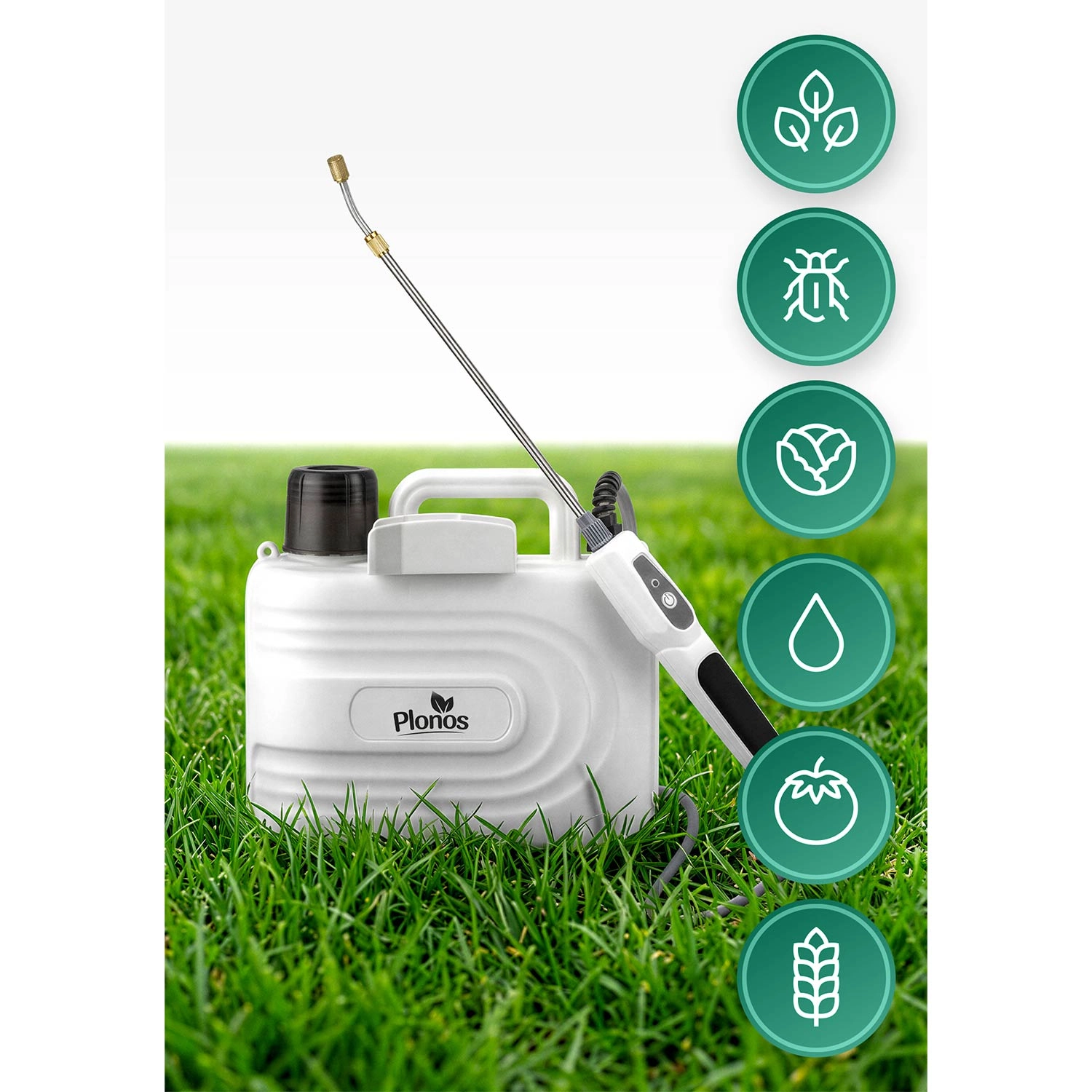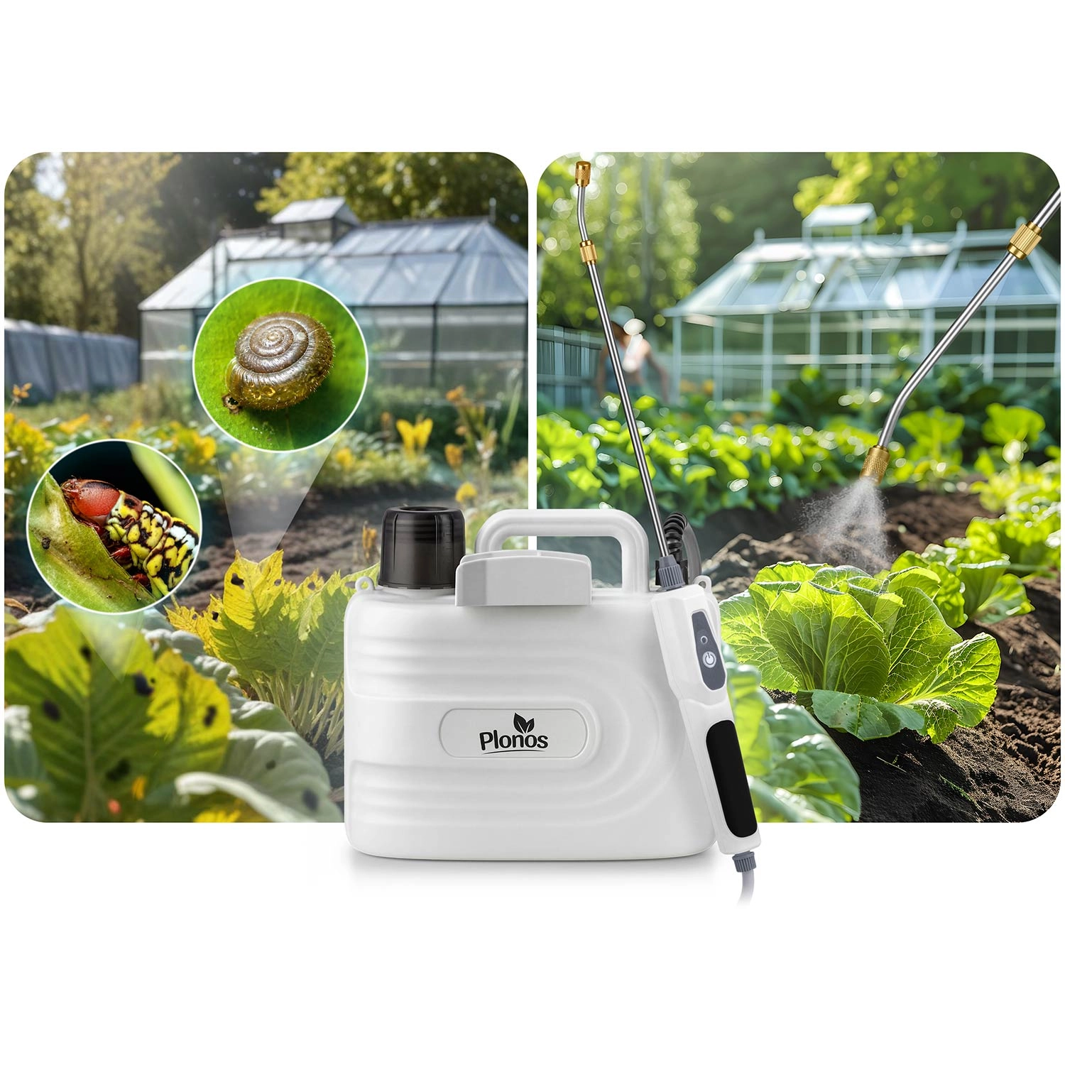 Stropitor pentru grădinari exigenți – stropitorul cu presiune pe acumulator PLONOS 5 l îmbină mobilitatea, puterea și precizia. Printr-o singură apăsare de buton pornești pulverizarea continuă fără pompare manuală, economisind timp și efort. Lancea din oțel inoxidabil și duza din alamă permit reglarea lină de la ceață fină la jet continuu, astfel încât adaptezi cu ușurință aplicarea îngrășămintelor și a produselor împotriva dăunătorilor.