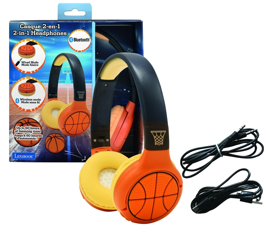 Oferiți-le copiilor o audiție distractivă și sigură. Căștile pentru copii LEXIBOOK cu motiv de baschet îmbină un design atrăgător cu funcții practice pentru utilizarea zilnică. Datorită tehnologiei Bluetooth funcționează wireless, iar când este nevoie, este suficient să conectați cablul inclus cu jack de 3,5 mm.