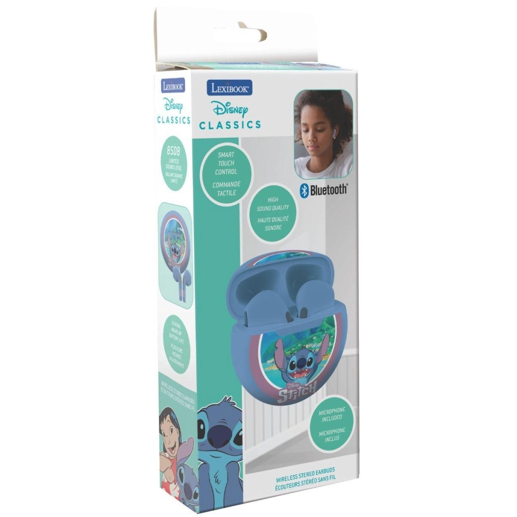Bucurați-vă de muzica și poveștile preferate cu adorabilele căști intraauriculare wireless LEXIBOOK cu motiv DISNEY STITCH. Datorită Bluetooth, ascultați fără cabluri, controlul tactil simplifică schimbarea melodiilor și preluarea apelurilor, iar microfonul integrat asigură o comunicare clară.