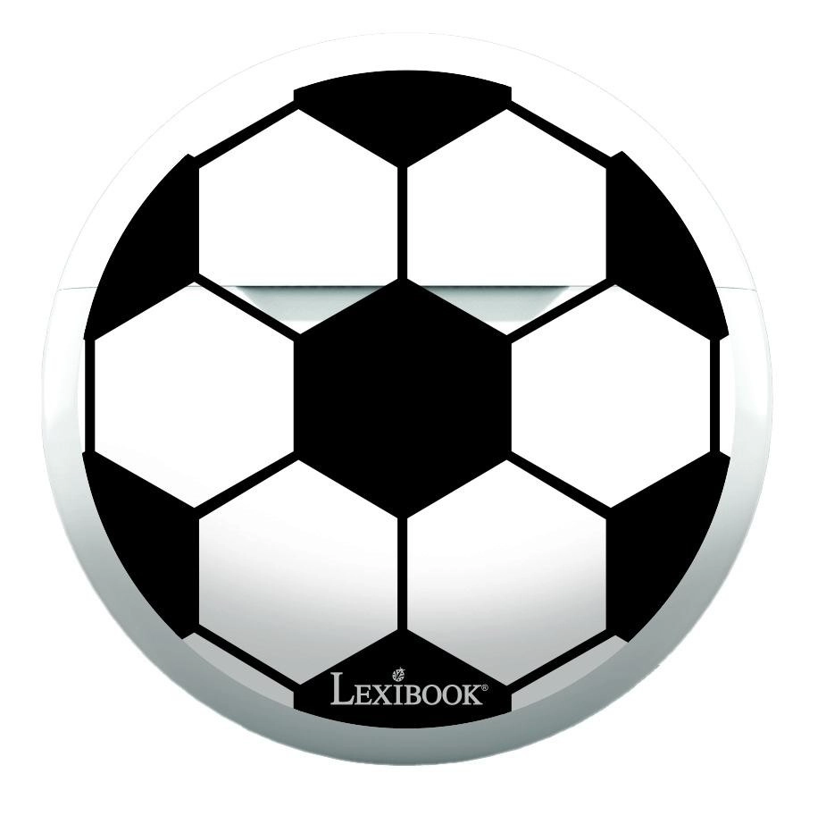 Carcasa în formă de minge de fotbal, cu logo LEXIBOOK, depozitează și încarcă în siguranță căștile. Dimensiunile compacte se potrivesc în rucsac sau buzunar.
