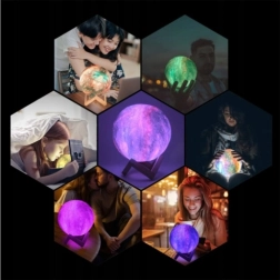 Lasă-te fermecat de lumina blândă care creează o atmosferă relaxantă și primitoare. Lampa lună cu diametrul de 15 cm este realizată prin imprimare 3D, redând realist craterele și denivelările suprafeței. Datorită încărcării prin USB, utilizarea este comodă și fără necesitatea schimbării bateriilor.