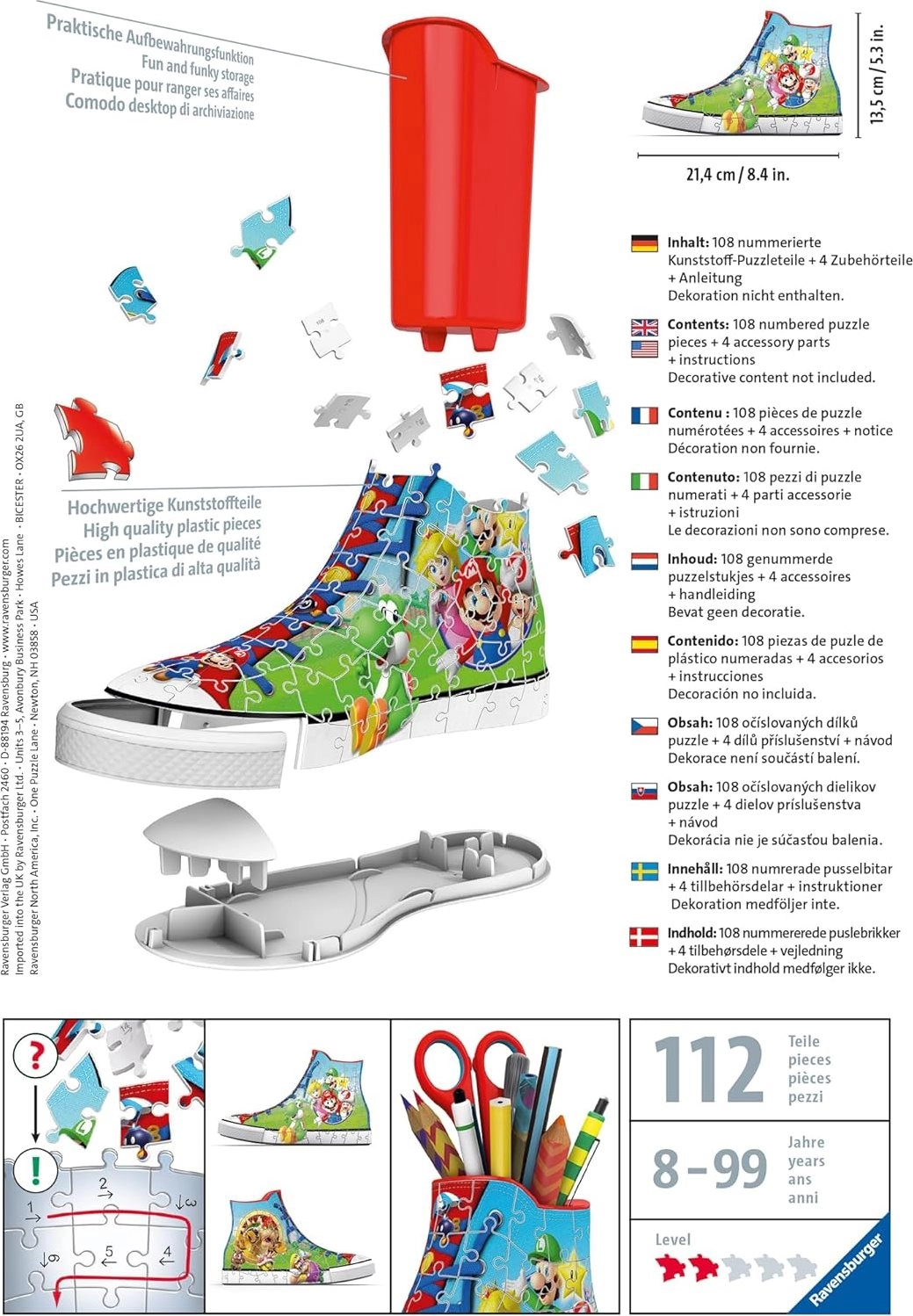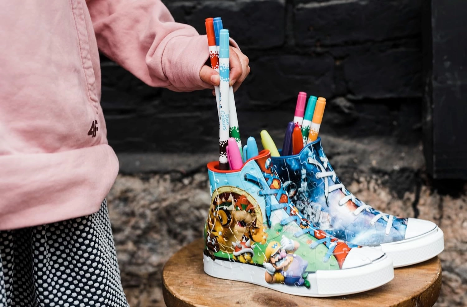 Creează din 108 piese de puzzle din plastic acest pantof sport clasic cu motiv Super Mario și obține o decorațiune perfectă pentru cameră! După asamblare te așteaptă un bonus suplimentar: îl poți folosi pentru pensule, creioane etc.