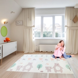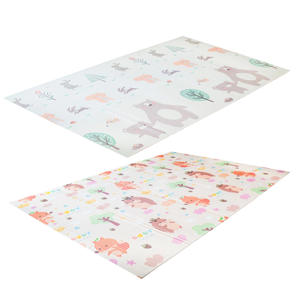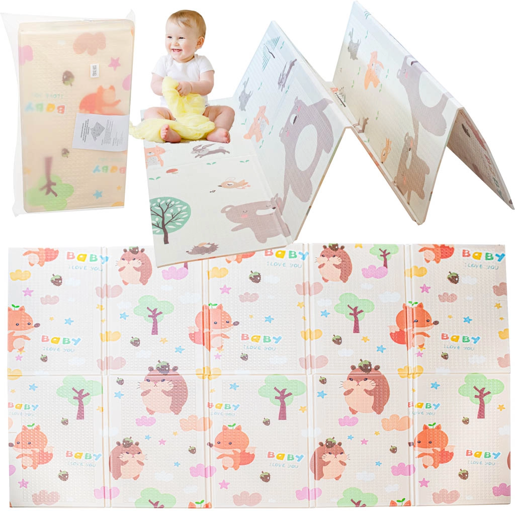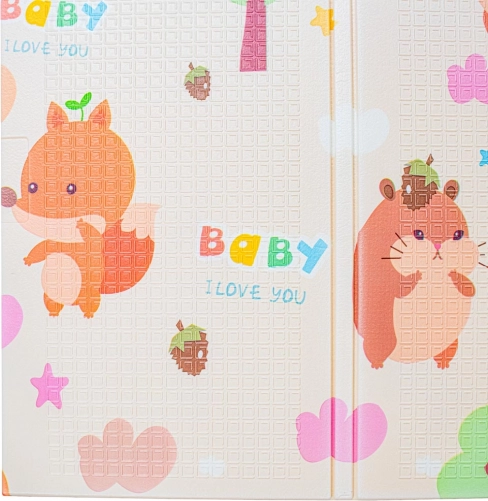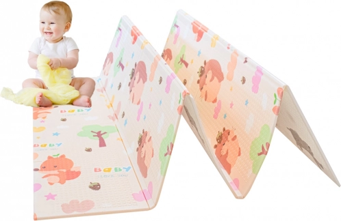 Vă oferim salteaua pliabilă din spumă bipartită cu arici/urs, fabricată din material XPE sigur, cunoscut pentru moliciunea și durabilitatea sa. Salteaua este potrivită pentru copii încă din primele zile de viață, iar textura sa moale este ideală pentru târâre și primii pași.