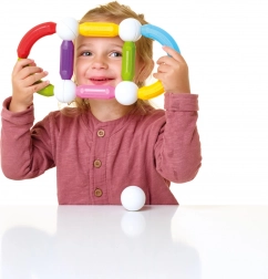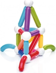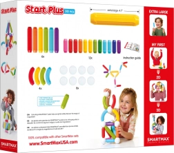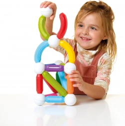 Setul de construcții magnetic SmartMax Start Plus este alegerea ideală pentru micii exploratori. Setul conține 30 de piese, incluzând tije lungi, tije medii, curbe și bile de conectare, care permit asamblarea construcțiilor simple și complexe. Copiii pot experimenta diferite forme și construcții 2D și 3D, precum turnuri sau poduri.
