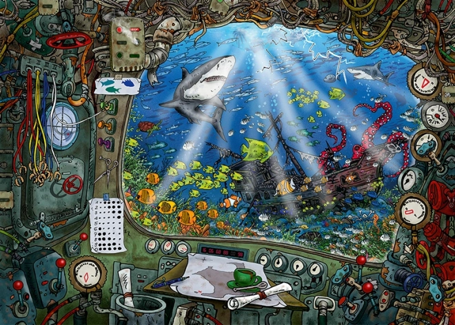 Îmbunătățiți-vă timpul liber cu Ravensburger Puzzle EXIT: Submarin și descifrați frumusețile albastrului adânc direct din confortul casei voastre.