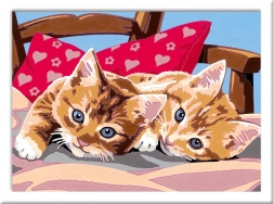 Devino pictor pentru o clipă și creează-ți propriul tablou cu motivul pisicuțelor. Trebuie doar să colorezi treptat suprafețele numerotate cu culorile corespunzătoare și să urmărești cum ia naștere în fața ta o lucrare frumoasă. Setul include o pânză rezistentă 24 × 18 cm cu model, un set de culori acrilice, o pensulă de calitate, un suport din carton pentru recipientele cu vopsea și o ramă – astfel vei expune ușor tabloul final.