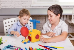 Umflați balonul, apăsați declanșatorul și priviți cum mașinuța pornește înainte. Copiii înțeleg pe viu principiul presiunii aerului și reacției la fiecare start.