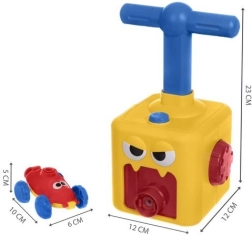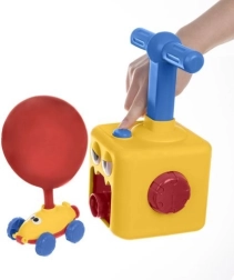 Jucărie distractivă și educativă, fără baterii, în care mașinuțele sunt propulsate de aerul din balon. Copiii montează balonul, apasă pompa de câteva ori și, prin apăsarea declanșatorului, lansează mașinuța înainte. Setul de 15 piese oferă ore întregi de jocuri, curse și învățarea bazelor fizicii prin joacă.