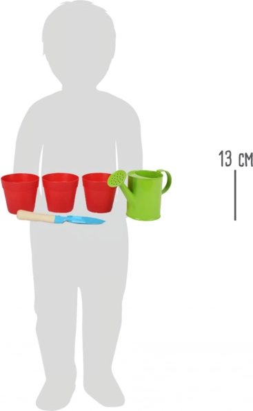 - Set complet pentru micii grădinari: 3 ghivece, 1 stropitoare, 1 lopățică