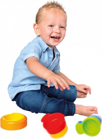 Stivuirea inelelor pe bază și introducerea lor una în alta întăresc degețelele, priza și coordonarea mână–ochi încă de la 10 luni.