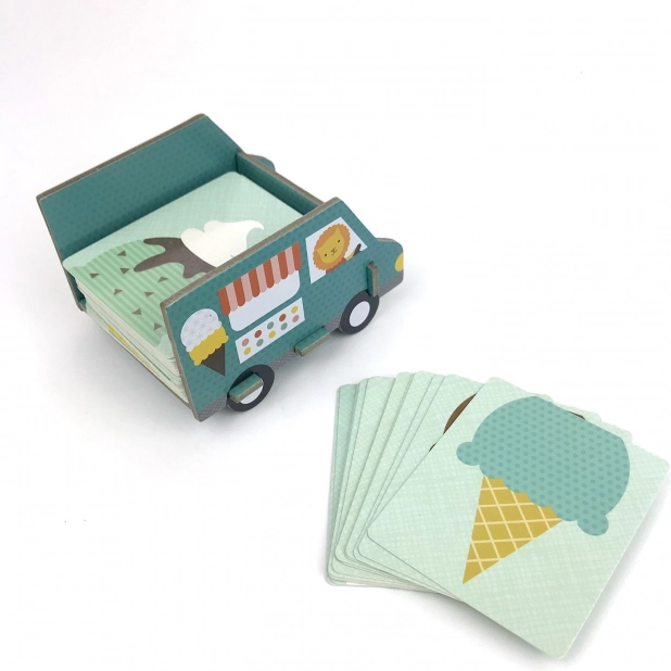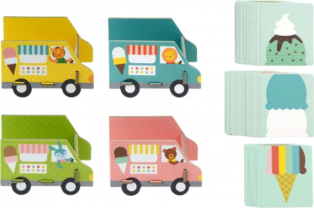 Pofticioșilor, uniți-vă! Un joc de cărți isteț și distractiv în care construiți cornete de înghețată, adunați cupe și adăugați topping. Conține 52 de cărți ilustrate și 4 furgonete de înghețată, este ideal pentru 2–4 jucători, durează aproximativ 10 minute și este realizat din materiale reciclate cu cerneluri pe bază de plante. O alegere grozavă pentru copii de 4–8 ani și respectă toate normele de siguranță.