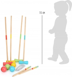 Croquetul din lemn Small foot Active este un joc atemporal pentru copii și adulți. Pur și simplu înfigeți porțile în gazon și le puteți aranja la distanțe mai mari sau mai mici, în diverse formații. Astfel, vă adaptați regulile și ritmul jocului abilităților și vârstei jucătorilor.
