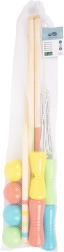 Setul este realizat din lemn 100% certificat FSC, provenit din păduri administrate responsabil. În timpul jocului se dezvoltă motricitatea fină și grosieră, coordonarea mână–ochi și colaborarea de echipă în mod natural. Bilele din lemn trebuie să treacă prin toate porțile în ordinea stabilită – cine reușește cel mai rapid și cu cel mai mic număr de lovituri, câștigă.