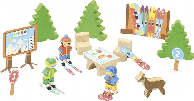 Acest set de construcție din lemn Jeujura este ideal pentru copiii care iubesc să construiască și să își trezească creativitatea. Copiii pot crea diverse construcții datorită celor 120 de piese prelucrate cu precizie. Setul include nu doar componentele pentru construcția stațiunii de schi, dar și o bază pentru simularea mediului.