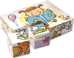 - Cuburi ilustrate din lemn / puzzle 3D și set de construcție