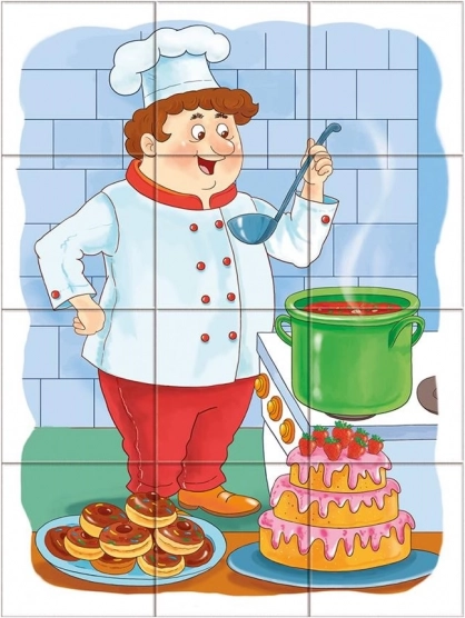 Cu ajutorul acestui puzzle, copiii vor cunoaște diferite profesii, cum ar fi polițist, bucătar sau fermier.