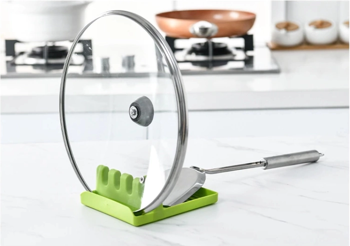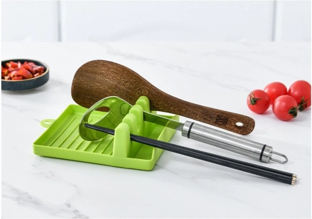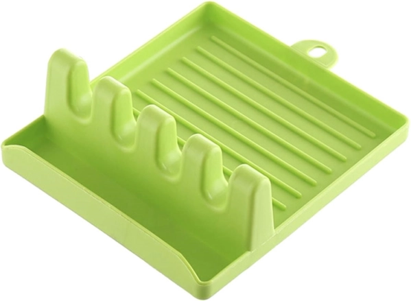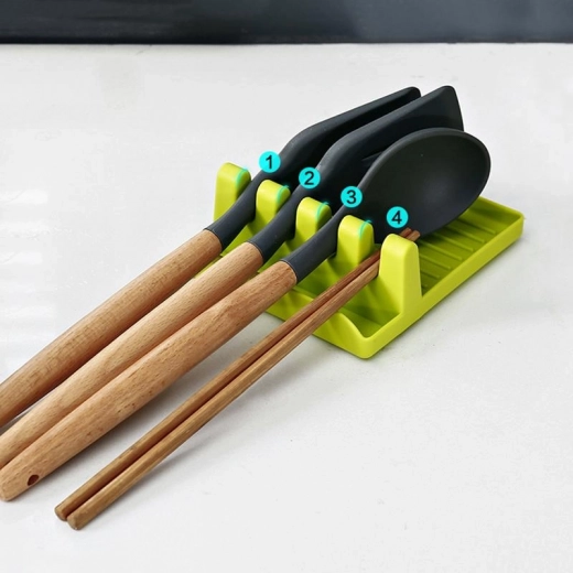 Suportul de odihnă are 4 fantă, în care în timpul gătitului puteți așeza orice ustensilă de bucătărie. Suportul din silicon funcționează și ca organizator în sertar, unde vă aranjează perfect lingurile și polonicele. Sfârșitul haosului în sertare și al aruncării tuturor ustensilelor de bucătărie la grămadă. Suportul este antiderapant, astfel încât va sta foarte bine pe blatul din bucătărie.
