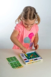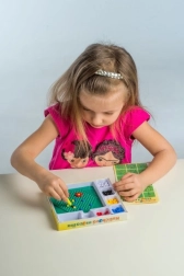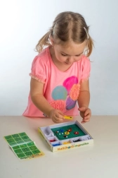 Acest mozaic este o alegere excelentă pentru primele activități creative. Copiii folosesc penseta pentru a așeza biluțele colorate pe suport și creează motive simple sau ingenioase. Activitatea susține răbdarea, coordonarea mână–ochi și dezvoltarea motricității fine.
