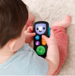 Telecomanda interactivă de la Fisher-Price oferă o distracție excelentă combinată cu învățarea pentru copii cu vârste între 6 și 36 de luni. Această telecomandă de jucărie vine cu peste 20 de melodii, sunete și fraze care îi învață pe copii bazele literelor, numerelor și culorilor.