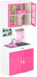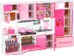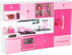 Această bucătărie modernă pentru păpuși aduce copiilor o lume a fanteziei și a imitării activităților zilnice. Cele patru segmente interconectate permit asamblarea unei bucătării complete cu toate elementele importante – de la plită cu cuptor până la frigider și chiuvetă. Arzătoarele cu iluminare LED și sunetele conferă jocului de gătit o notă realistă.