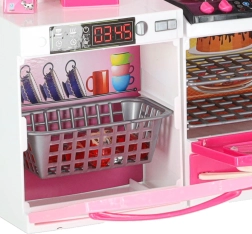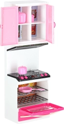 Setul include cuptor cu microunde și mașină de spălat vase, plită cu cuptor, vitrină cu chiuvetă și frigider cu sertar. Copiii se vor bucura de un scenariu complet de gătit, copt și făcut ordine.