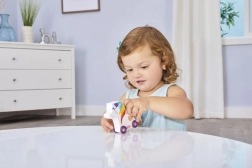 Jucăria are culori vibrante și un stil vizual jucăuș, care atrage copiii și le stimulează imaginația.