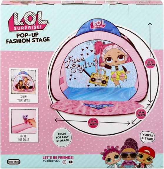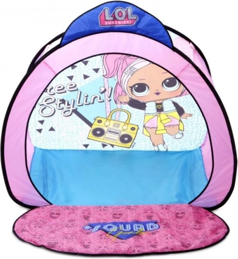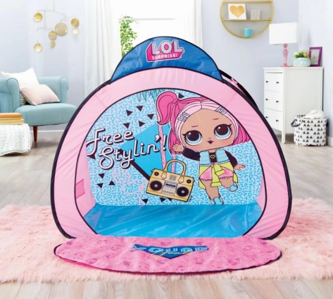 Cortul este decorat cu imagini ale personajelor stilizate din LOL Surprise, oferind o experiență interactivă și magică de joacă.