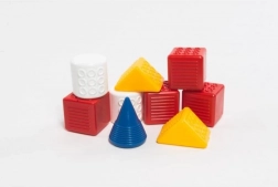 Acest set didactic de cuburi este o alegere ideală pentru primele construcții. Datorită celor patru forme și culori, copiii învață culorile, formele și își dezvoltă coordonarea mână–ochi. Cuburile sunt ușoare, sigure și plăcute la atingere.