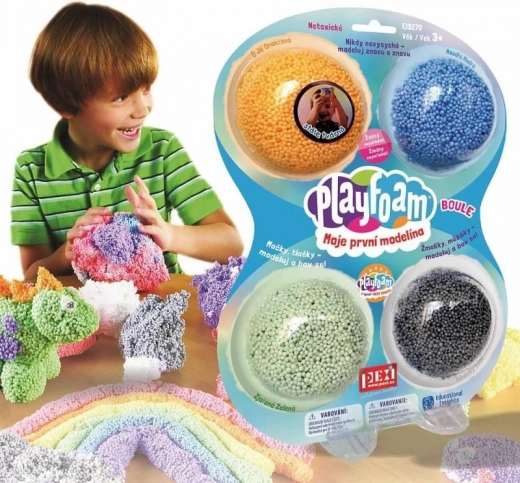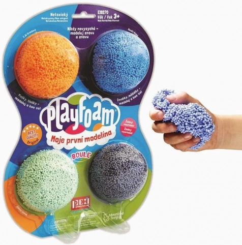 PlayFoam Boule este o modelină spumoasă originală, formată din biluțe moi unite printr-un liant special. Datorită compoziției nelipicioase, nu aderă la suprafețe și nu se usucă niciodată – ideală pentru modelare repetată acasă sau în călătorii. Pachetul conține patru culori „pentru băieți”: portocaliu, albastru, verde și gri.