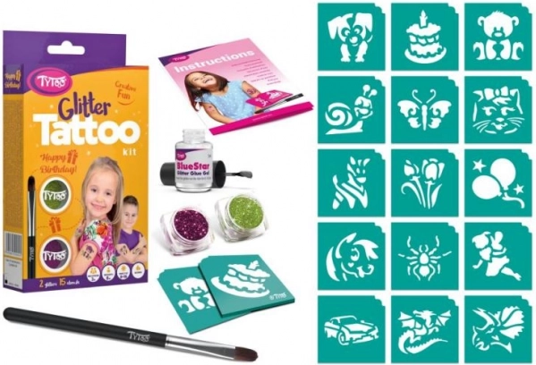 Creează o atmosferă unică la petrecerea de ziua de naștere cu tatuajele sclipitoare TyToo Happy Birthday. Setul conține 15 șabloane cu motive vesele și 2 culori de sclipici, care rezistă pe piele aproximativ 8–18 zile. Tatuajele sunt rezistente la apă, dar se îndepărtează ușor cu alcool sau ulei pentru bebeluși. Modelele finalizate pot fi decorate suplimentar cu pietricele autocolante sau ochi mișcători pentru un efect și mai expresiv.