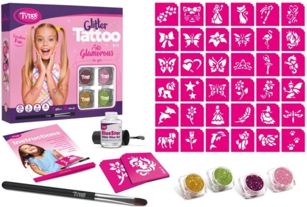 Setul TyToo Glamorous este ideal pentru petreceri pentru copii, carnavaluri și activități creative acasă. Datorită gamei largi de șabloane și celor patru culori, veți crea ușor motive expresive, sclipitoare, care vor încânta orice mică fashionistă. Modelele finalizate pot fi evidențiate suplimentar cu pietricele autoadezive și ochișori mobili.
