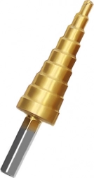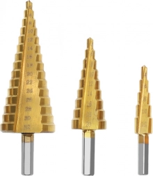 Burghiele în trepte sunt ideale pentru realizarea rapidă a diferitelor diametre cu un singur instrument. Datorită mai multor trepte pe fiecare burghiu, lărgiți ușor orificiul la dimensiunea dorită fără schimbarea uneltei. Stratul de titan reduce frecarea, crește durabilitatea și îmbunătățește calitatea tăieturii.