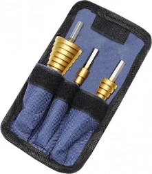 Fiecare burghiu are marcaje ale diametrelor clar lizibile, astfel încât știți mereu în ce etapă a găuririi vă aflați. Setul este livrat într-o husă textilă rezistentă, care păstrează burghiele separate, protejate și gata de lucru acasă, în atelier sau pe teren.