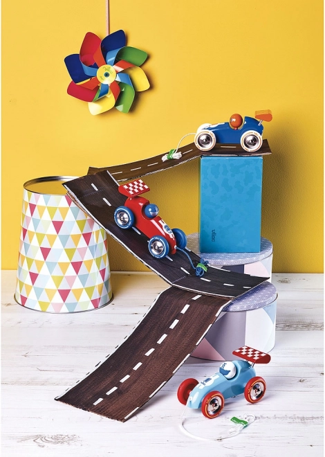 Drăgălașa mașinuță de tras de curse din lemn lăcuit, în culoare turcoaz, cu eleroană roșie, îi încântă pe micii piloți de la 18 luni. Sprijină echilibrul și coordonarea mișcărilor, este fabricată în Franța, iar datorită dimensiunilor compacte de 16 × 9 × 9 cm, copiii o pot lua ușor în orice aventură.