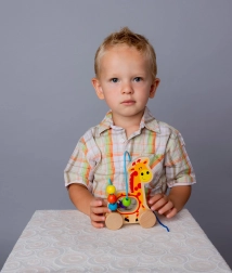 Această jucărie multifuncțională în formă de girafă îi distrează pe cei mici atât când o trag, cât și când deplasează mărgelele pe firele metalice. Dezvoltă într-o manieră ludică motricitatea fină și grosieră, coordonarea mână–ochi și ajută la primele etape de descoperire a culorilor.